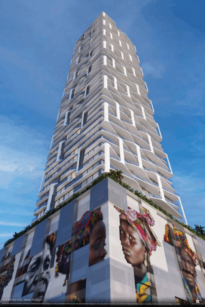 “By situating her work on the podium, Volf redefines its role. The podium ceases to be a base for architecture and instead becomes a stage for collective history. It anchors the building not only to its site but to its cultural lineage, rooting contemporary development in the lives, rhythms, and voices of those who built Overtown’s story,” it reads.